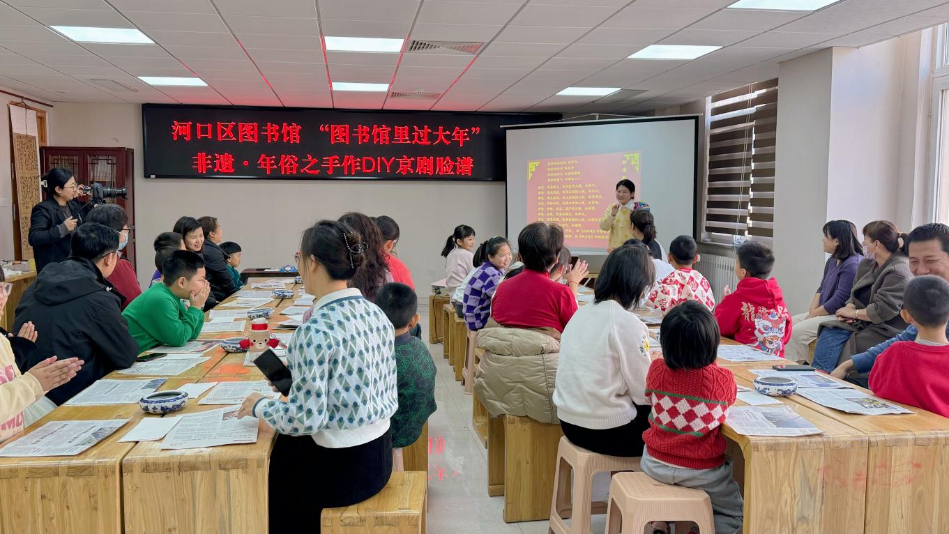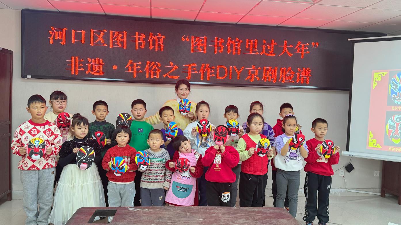 대중들에게 중화민족의 우수한 전통문화를 대중화하고, 청소년들에게 중국의 국수를 알리고, 청소년들이 경극과 경극 면보(중국 전통극에서 일부 배역들의 얼굴 분장) 문화를 잘 이해시키고, 그들이 경극예술에 대한 관심을 일으키기 위해, 2월 16일 오전에 둥잉시 허커우구 도서관은 니산서원에서 무형문화재·설 풍속을 주제로 한 수제 경극 면보 가면 DIY 체험 행사를 개최하고, 상청미술관 장징징 선생님을 초청하여 강의를 진행하였다.