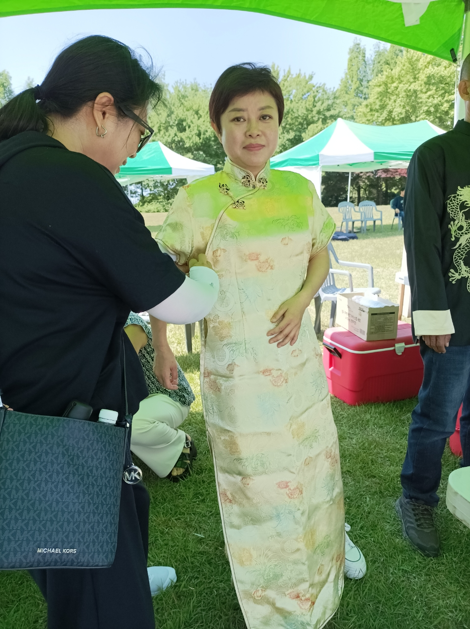 중국의 '국수'(國粹)로 알려진 치파오(旗袍)는 우아한 선(線)과 풍부한 문화적 함축으로 동양 여성의 독특한 매력을 보여준다.행사에서는 치파오 전시 코너를 마련하여 참가자들이 치파오의 아름다운 공예품을 가까이에서 감상할 수 있도록 하였다.또한 치파오 피팅 코너를 마련하여 한국인 친구들이 치파오의 우아함과 멋을 직접 느낄 수 있도록 하였다.