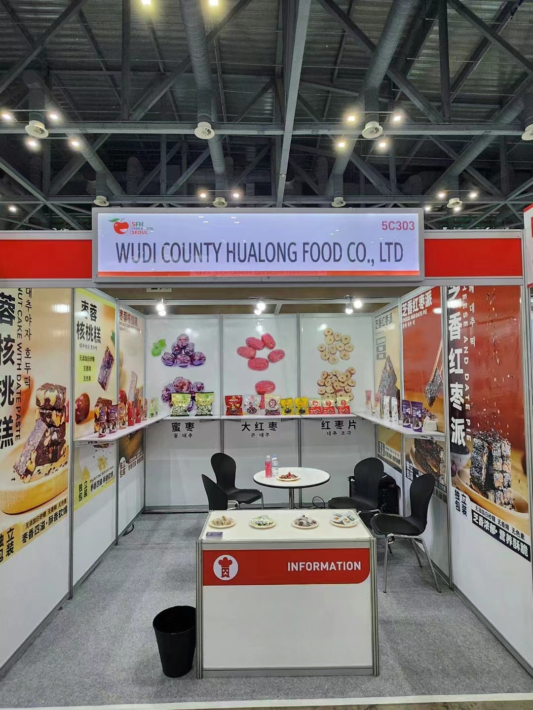 2024년 6월, 무띠 화룽 식품 유한회사(Wudi County Hualong Food Co., Ltd.)가 인기 있는 대추 제품을 선보이며 서울 COEX 전시장에서 열린 한국 서울 호텔용품 및 식품 박람회(Seoul Food & Hotel, SFH)에 참가했습니다.