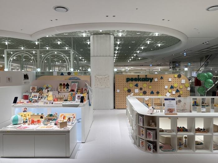 매장 왼편에 마련된 제품 존에서는 피카비 플레이키트와 전체 상품 구성을 둘러볼 수 있으며,피카비의 놀이 가이드가 담긴 구독자 전용 앱도 체험해 볼 수 있다. 아이들이 도형 블록을 자유롭게 꽂았다 빼며 꾸며볼 수 있는 페그보드존도 마련돼 있다.