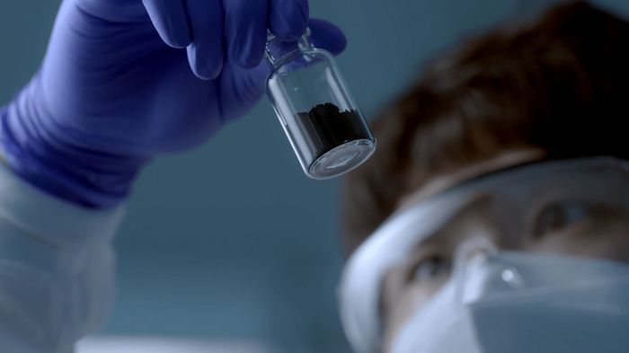 LG화학 연구원이 양극재 샘플을 보고 있다<사진=LG화학>