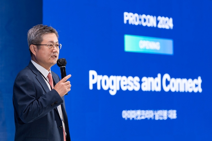 남인봉 아이마켓코리아 대표가 지난 16일 소노펠리체 컨벤션에서 진행된 ‘프로콘 2024’에서 인사말을 하고 있다. [사진 제공=아이마켓코리아] 아이마켓코리아는 ‘구매의 미래를 그리다’를 주제로 기업 간 거래(B2B) 구매 컨퍼런스 ‘PRO:CON 2024(이하 프로콘 2024)’를 성황리에 마무리했다고 17일 밝혔다.