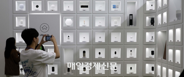 22일 서울 강남구 삼성동 코엑스에서 열린 KES 2024(한국전자전)를 찾은 관람객들이 삼성전자 부스를 경험하고 있다.