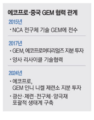 에코프로는 1998년 이 전 회장이 환경 사업을 하겠다며 서울 서초동에서 직원 1명과 함께 시작한 회사다. 2013년 2차전지 종주국인 일본 소니에 양극재를 공급하며 품질을 인정받았다. 올해로 창립 26년을 맞은 현재 에코프로그룹은 직원 수 3500명,연 매출 7조원의 글로벌 기업이다. 에코프로는 전구체 합작법인 설립,리사이클 기술이전을 비롯해 중국 GEM과 10년에 걸쳐 배터리 소재 사업 전반에서 협력하며 신뢰 관계를 구축하고 있다. 에코프로는 2015년 GEM에 전구체 기술을 전수해주고,GEM은 전구체를 에코프로에 공급하는 방식으로 협력을 시작했다.