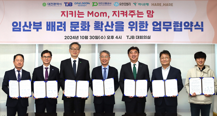 지난 30일 대전방송에서 열린 업무협약식에는 대전시,대전방송,하나은행,대전관광공사,대전교통공사 등이 함께 했다. 참여 기관과 기업 대표들은 임산부 배려 문화를 지역사회에 확산해 저출생과 지역소멸 위기 대응에 기여할 수 있도록 상호 협력하기로 했다. ‘지키는 Mom,지켜주는 맘’이란 슬로건도 제시했다.