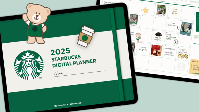 굿노트 스타벅스 디지털 플래너 굿노트가 스타벅스 코리아와 협업해 ‘2025 스타벅스 디지털 플래너’와 ‘2025 스타벅스 스티커북’을 선보인다. [굿노트] 글로벌 1위 필기앱 굿노트가 스타벅스 코리아와 협업해 ‘2025 스타벅스 디지털 플래너’와 ‘2025 스타벅스 스티커북’을 출시했다고 11일 밝혔다.