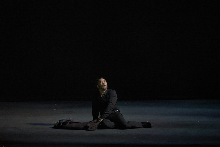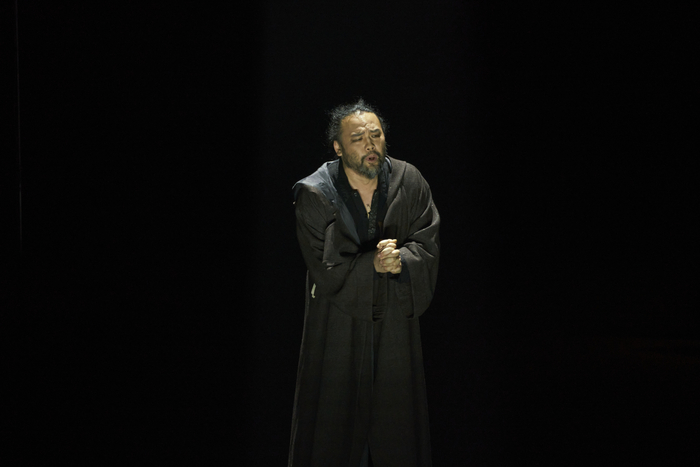 지난 16일 서울 예술의전당 오페라극장에서 상연한 ‘방랑자,영웅의 여정’ 중 슈베르트 ‘도플갱어’를 열창하는 베이스바리톤 사무엘 윤. 사진제공=예술의전당