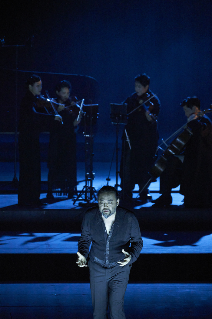 통상 성악가가 가곡 리사이틀을 열면 기악 연주자 반주에 의지해 홀로 서서 노래하지만,이번 무대는 여느 오페라 전막 못지않게 다양한 요소가 동원됐다. 국립발레단 발레리노 출신 비주얼 아티스트 박귀섭(활동명 BAKi)이 연출과 영상을 맡았고,피아니스트 박종화와 현악 4중주단 아벨콰르텟이 다채로운 음색을 연주했다. 3명의 무용수가 고독한 인간의 슬픔,혼돈,절망,구원 등을 몸으로 표현하기도 했다.