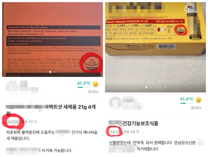 한 중고거래 사이트에 거래되고 있는 건강기능식품이 ‘뷰티미용’ 혹은 ‘가공식품’ 카테고리에 설정되어 있다. [사진 = 중고거래플랫폼 캡처] 지난 5월 건강기능식품(건기식) 개인 간 중고 거래 시범 사업이 도입된 이후 거래 규정을 위반한 사례가 꾸준히 적발되고 있으나 여전히 시정되지 않은 모습이다. 소비기한,건기식 거래 횟수,건기식 카테고리 지정 등 규정을 지키지 않은 거래 글이 계속해서 올라오고 있다.