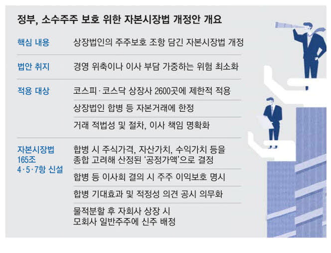 이에 따라 정부와 여당은 이사의 주주에 대한 충실의무를 자본시장법에 반영하는 동시에 이로 인한 부작용을 방지하는 장치를 담은 자본시장 개정법을 조만간 발표한다. 합병을 비롯한 자본거래에 한해서 주주이익을 적극 고려하는 방향이다.