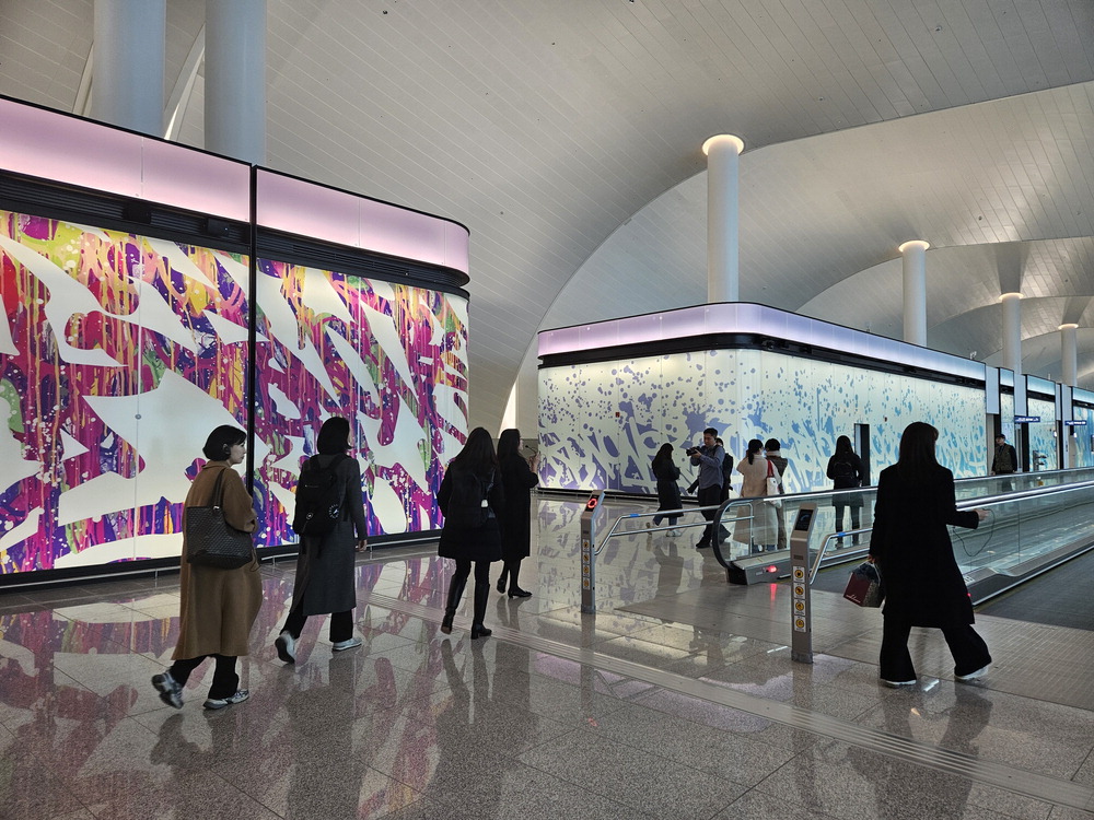 인천국제공항 제2여객터미널(T2) 서편 출국장을 장식한 미국의 세계적인 그라피티 아티스트 존원의 작품 '코리아 재즈'. 인천 송경은 기자