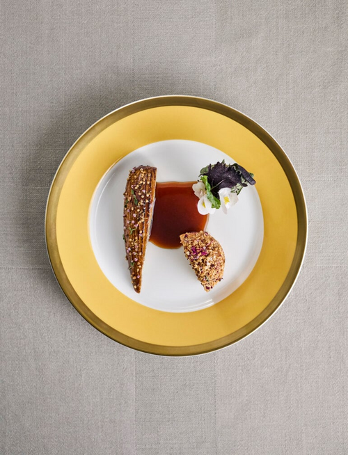 그 가운데 메인디쉬가 서빙되자 기자를 포함한 테이블은 ‘탄성’을 질렀는데 ‘폼 드 뷔(Pomme de Vie)’란 이름의 사과 브랜디가 들어간 소스가 그야말로 ‘천국의 향’에 가까웠기 때문이었다. 다들 접시 아으로 코를 킁킁거렸다. ‘노벨 디저트’로 불리는 역사적인 요리 역시 감탄을 자아냈다. 달게 절인 사과를 1mm 두께,1cm 부채꼴 모양으로 썰어 겹친 모양이었는데 보기만 해도 귀한 예술품 같아 포크를 대기가 망설여질 지경이었다.