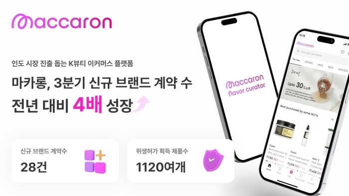 블리몽키즈(대표 유승완)가 운영하는 인도 K뷰티 이커머스 플랫폼 ‘마카롱’은 올 3분기까지 신규 브랜드 계약이 전년 대비 4배 성장한 28건을 달성했다고 11일 밝혔다.