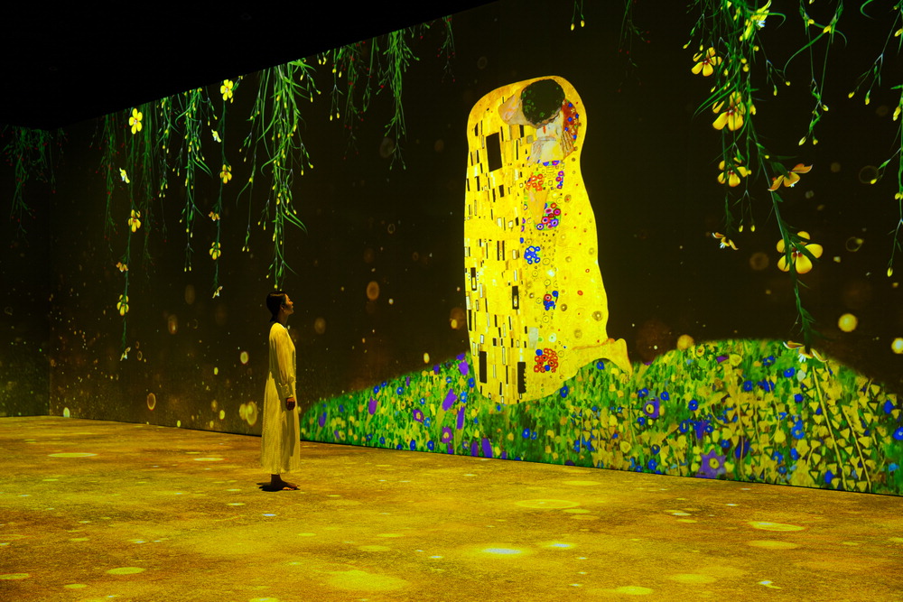 구스타프 클림트(1862~1918)의 황금빛 명화 속으로 걸어가는 기분이었다. 진정한 사랑에 대한 경의를 담은 작품 '키스'(1908)가 등장하면 꼭 끌어안은 남녀가 있는 꽃밭 위로 찬란한 황금빛이 부슬비처럼 떨어졌다. 아름다운 피아노 선율도 분위기를 고조시켰다.
