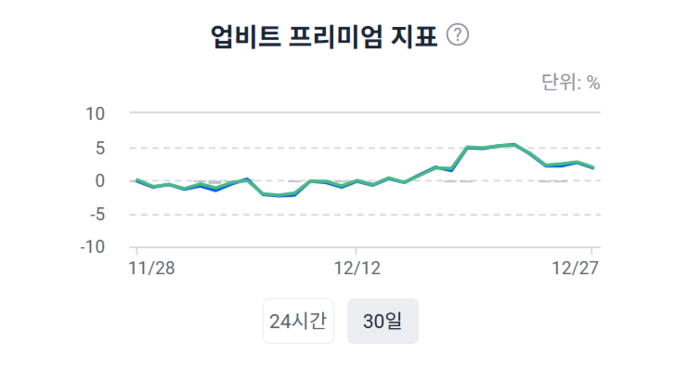 업비트 비트코인 프리미엄 지표 5.3%까지 상승