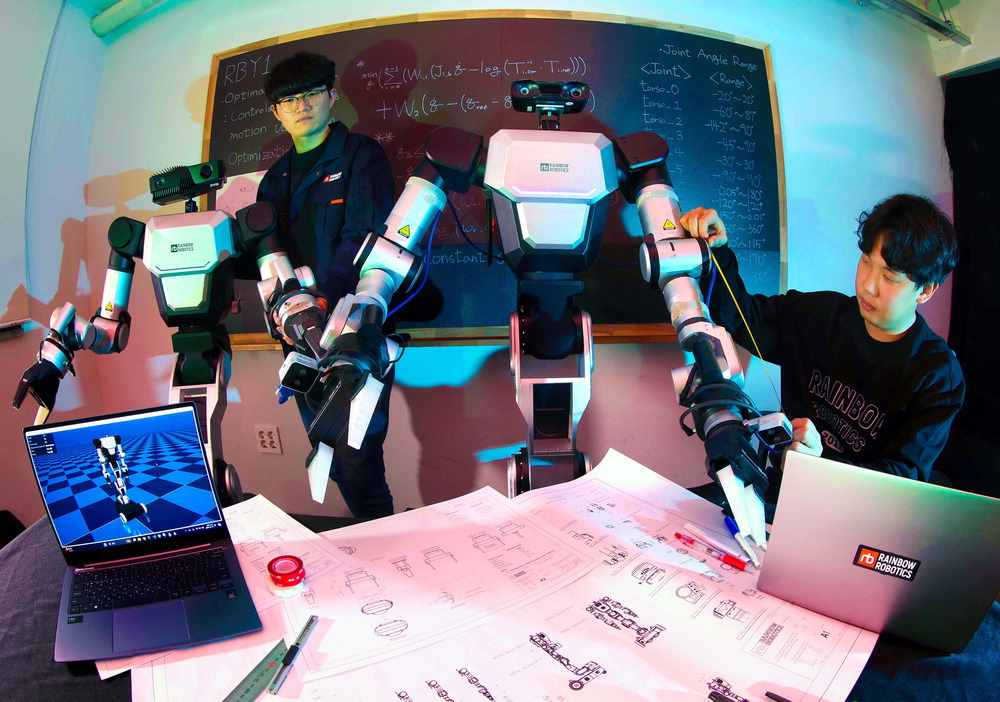 지난달 대전 유성구 소재 레인보우로보틱스에서 연구원들이 국내 최초의 이동형 양팔로봇 'RB-Y1'을 점검하고 있다. 한주형 기자