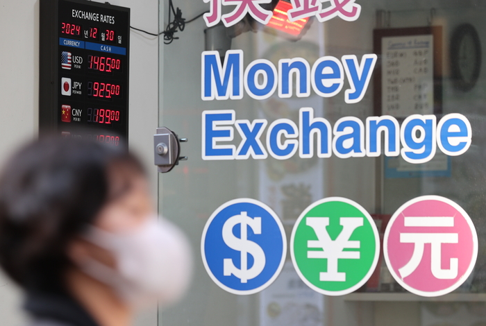 3일 서울 외환시장에서 달러당 원화값은 전 거래일보다 2.4원 내린 1469.0원으로 개장했다. 오전 9시 41분 현재 전거래일(2일) 종가(1466.6원)보다 1.15원 오른 1465.45원에 거래 중이다.