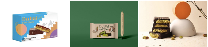 두바이 초콜릿은 두꺼운 초콜릿 안에 중동식 소면인 카다이프를 버터에 볶은 것과 피스타치오 스프레드를 섞어 만든 필링을 채운 디저트로,유튜브를 중심으로 콘텐츠가 확산하면서 선풍적인 인기를 끌었다.