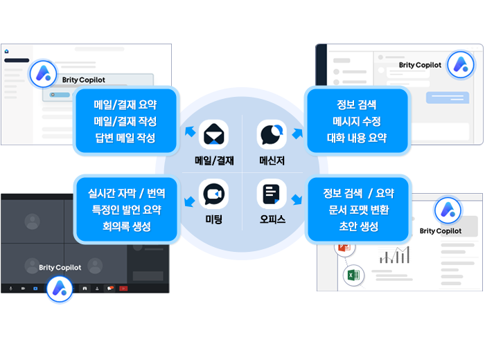 브리티 코파일럿은 이메일,메신저,영상 회의 등 협업 설루션에 생성형 AI 기술을 적용한 서비스로 지난해 4월 출시 이후 금융,제조,건설 등 산업 분야에서 18만 명 이상이 쓰고 있다.