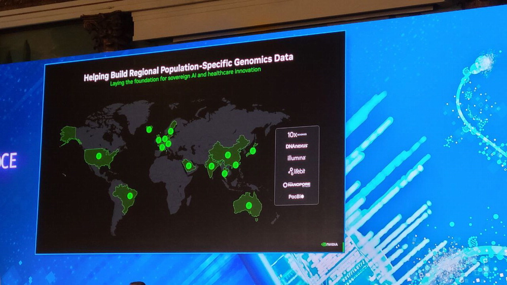 엔비디아가 14일(현지시간) JP모건 헬스케어 콘퍼런스에서 세계인의 유전체 데이터 학습·분석 전문 인공지능(AI)을 구축하겠다고 밝혔다. 이날 발표된 자료에 아시아 지역 중 중국·일본이 포함되고 한국은 제외됐다.