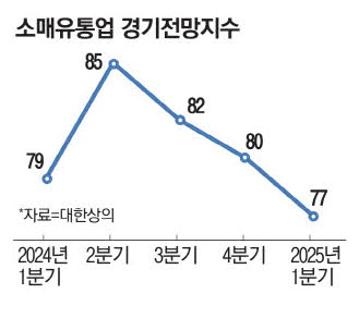 악화된 소비심리가 나아질 기미를 보이지 않아 유통업계는 올해에도 '할인' 경쟁이 치열해질 것으로 예상한다. 소매유통업 경기 전망을 나타내는 '대한상공회의소 소매유통업 경기전망지수(RBSI)'는 올해 1분기 77로 3개 분기 연속 하락했다. RBSI가 100 이상이면 다음 분기 소매유통업 경기를 지난 분기보다 긍정적으로 보는 기업이 많다는 뜻이고,100 미만이면 그 반대다. 업태별로는 백화점,대형마트,슈퍼마켓 등 모든 업체에 걸쳐 경기전망지수가 전 분기보다 하락했다.