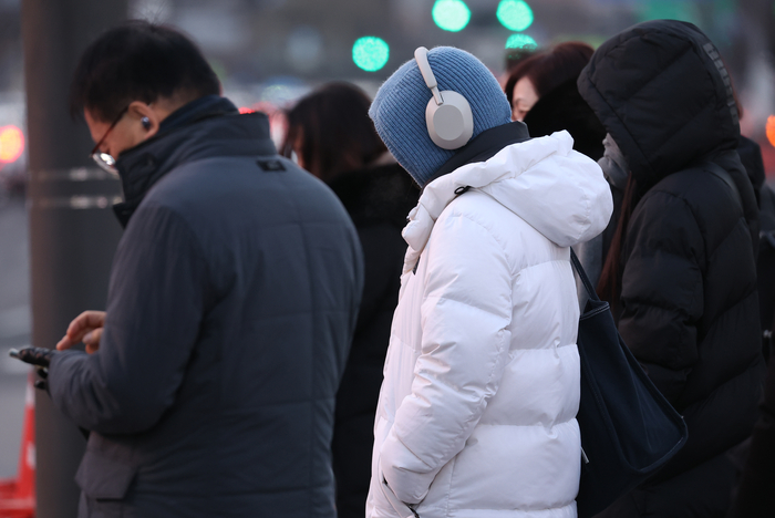 강추위가 이어져 전국 대부분 지역에 한파 특보가 발효된 지난 10일 오전 서울 종로구 광화문광장 인근에서 시민들이 이동하고 있다.[사진제공=연합뉴스] 1월에 찾아온 늦추위로 패션업계가 모처럼 함박웃음을 짓고 있다. 단가가 높은 헤비 아우터와 방한의류를 찾는 수요가 최근 부쩍 증가했기 때문이다.
