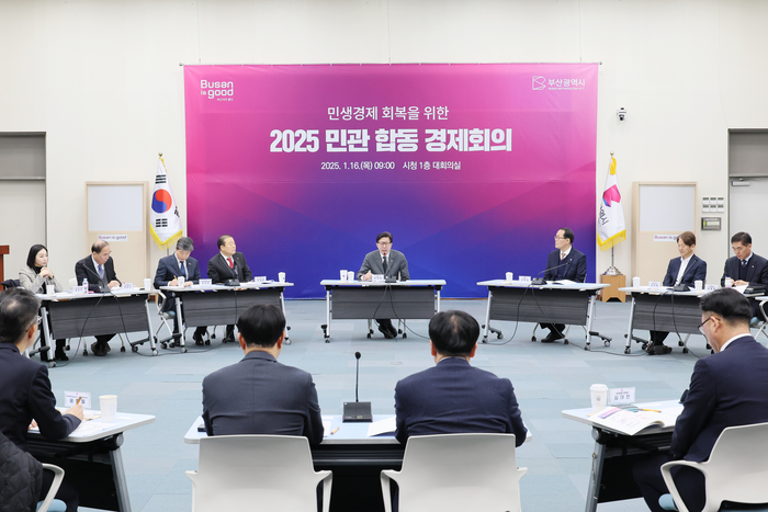 부산시는 16일 시청 대회의실에서 ‘2025 민관 합동 경제회의’를 개최하고 ‘2025년 경제정책방향’을 논의했다. 이번 회의는 올해 첫 경제 분야 회의로 지역의 복합 경제 위기와 저성장 극복을 위해 부산시의 올해 경제정책 방향과 기관별 시책을 공유하고,경제활력의 추진 동력을 모으기 위해 마련됐다.