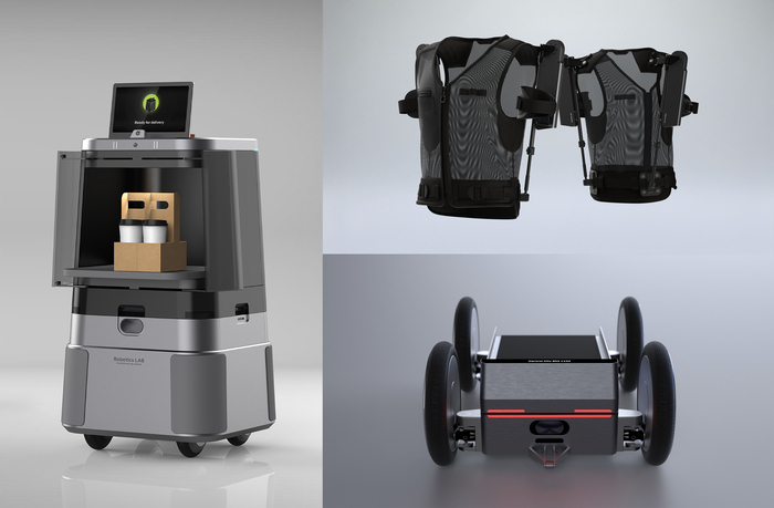 2024 굿디자인 어워드 수상작 ‘달이 딜리버리∙엑스블 숄더’ [자료출처=현대차그룹] 현대차∙기아 로보틱스랩은 산업용 착용 로봇 ‘엑스블 폴더’와 배송 로봇 ‘달이 딜리버리’를 비롯한 5개 제품이 우수 디자인으로 선정됐다. 이는 로보틱스 전체 수상작 10개 중 절반을 차지하는 성과다.