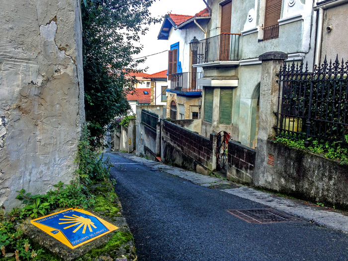 The yellow scallop shell signing the way to santiago de compostela on the Major Christian pilgrimage route Camino de Santiago,the Way of Saint James,along the Northern coast of Spain