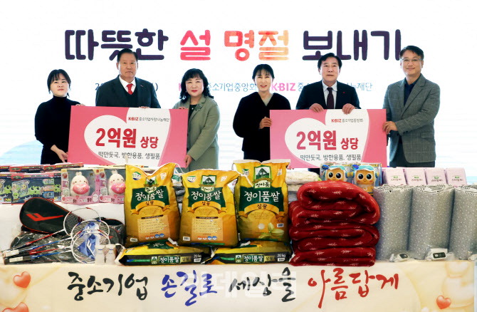 중소기업중앙회와 중소기업사랑나눔재단이 설을 앞두고 떡만둣국과 방한용품,생필품을 비롯해 2억원 상당을 전국 200여 곳의 복지시설에 전달했다고 21일 밝혔다.