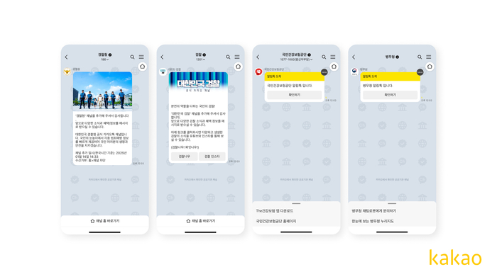 해당 채널 채팅방에는 관청 모양과 지구본 모양 등의 아이콘이 규칙적으로 배열돼 있고,하단에는 ‘카카오에서 확인한 공공기관 채널’이라는 문구가 적혀 있다.
