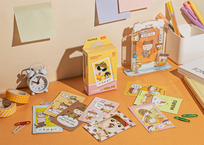 한국후지필름,네이버웹툰 마루는 강쥐와 협업 진행 / 사진=한국후지필름 ‘마루는 강쥐’ 협업 제품은 카카오톡 선물하기에서 단독으로 판매한다. 먼저 미니12 카메라 패키지는 ‘미니12 카메라 5종 중 택1’ ‘렌즈 덮개 & 끈’ ‘필름 10매’ ‘프레임 스티커 10종 1세트’ ‘포토카드 10종 1세트’ ‘빅데코스티커 3종 1세트’로 구성한다.
