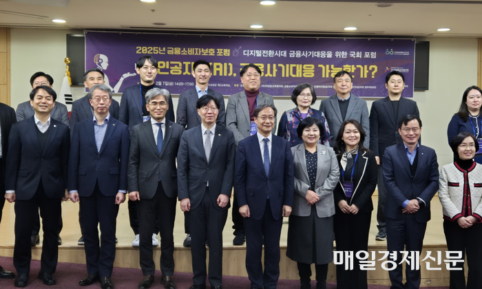 7일 국회의원회관 제2소회의실에서 개최된 ‘디지털전환시대 금융사기 대응을 위한 국회 포럼’에서 참석자들이 기념촬영을 하고 있다. [사진 출처 = 최종일 기자] 날로 교묘해지는 금융 범죄로 인한 피해가 커지는 만큼 인공지능(AI) 등을 활용해 적극적으로 대응해야 한다는 의견이 나왔다.
