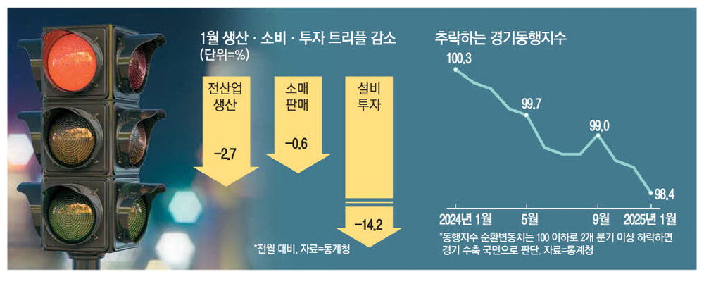 두 달 만에 다시 생산·소비·투자가 동반 추락하며 올해 1월 경기 '성적표'부터 경착륙 조짐이 뚜렷하다. 도널드 트럼프 미국 대통령이 촉발한 관세전쟁 리스크가 거의 반영되지 않은 결과라는 것을 감안하면 상황은 더욱 악화될 가능성이 크다.
