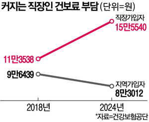 9일 국회와 건강보험공단에 따르면 지난해 8월 기준 건강보험 직장가입자의 월평균 보험료는 15만5540원으로 집계됐다. 이는 지역가입자 평균 보험료인 8만3012원보다 약 87% 높은 수준이다.