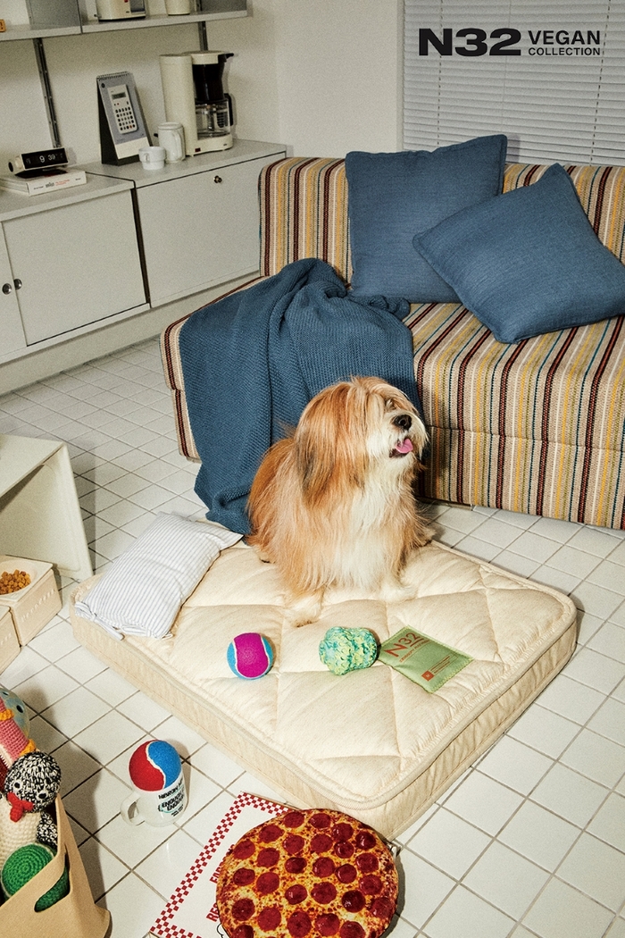 ‘N32쪼꼬미’ 매트리스는 아이슬란드 유기농 해조류를 원료로 만든 ‘아이슬란드 씨셀’과 천연 식물성 소재 ‘린넨 자가드’를 사용한 폼 매트리스다. 사람이 쓰는 것과 같은 원재료로 모두 비건 소재다.