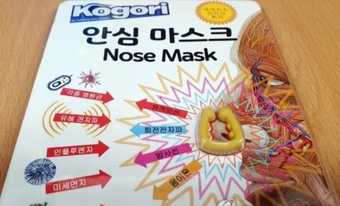 코고리 안심 마스크 이미지.[사진제공=연합뉴스] 효능이 검증되지 않은 일명 ‘코고리 마스크’를 판매해 법정에 선 업체 대표가 첫 공판에서 혐의를 부인했다.