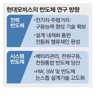 현대오트론을 인수한 이후 현대모비스는 전력반도체와 시스템반도체 두 분야에 집중한 연구개발에 나서고 있다.