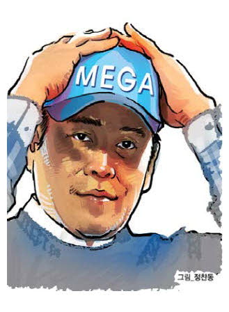 정용진 신세계그룹 회장이 도널드 트럼프 미국 대통령의 캐치프레이즈를 패러디한 모자를 지인들에게 나눠줘 눈길을 끌고 있다. 최근 취임 1주년을 맞은 정 회장이 트럼프 대통령 측과의 긴밀한 관계를 반영해 주력 기업인 이마트의 부활 의지를 재치 있게 풀어낸 것이다. 18일 재계에 따르면 정 회장은 지난 1월 트럼프 대통령 취임식에 다녀온 뒤 지인들에게 '메가(MEGA)' 문구가 쓰인 모자를 선물한 것으로 알려졌다. 메가는 '이마트를 다시 위대하게(Make E-mart Great Again)'의 줄임말이다. 트럼프 대통령을 상징하는 '마가(Make America Great Again·미국을 다시 위대하게)'를 패러디한 문구다.