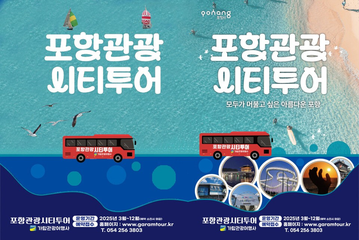 포항시는 3월부터 포항의 대표 관광 명소와 전통시장 등을 버스를 타고 둘러보는 ‘2025년 포항 관광 시티투어’를 운영 중이다. 도심 관광 상품 중 하나인 ‘퐝순환 코스’를 이용하면 죽도시장에서부터 영일대해수욕장을 거쳐 스페이스워크까지를 한꺼번에 들를 수 있다. 이 코스는 매주 토·일요일 오전 8시 30분부터 오후 2시 30분까지 1일 4회 운행한다.