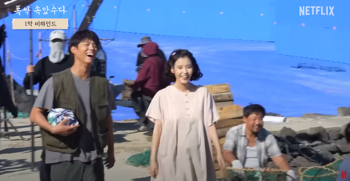 경북 안동 세트에서 촬영 중인 ‘폭싹 속았수다’ 제작진들. [사진 출처 = 넷플릭스 코리아 유튜브] 결국 ‘폭싹 속았수다’는 제주 배경이지만,김녕해변과 성산일출봉,오라동 메밀밭 등 자연환경 위주로만 영상에 담겼고,세트장은 경북 안동에 지어졌다.