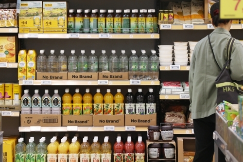 서울의 한 이마트 매장에 자체브랜드인 ‘노브랜드’ 상품들이 진열되어 있는 모습. [사진 = 연합뉴스] 이마트는 PB 브랜드 ‘노브랜드’ 상품 개발에 힘주고 있다.