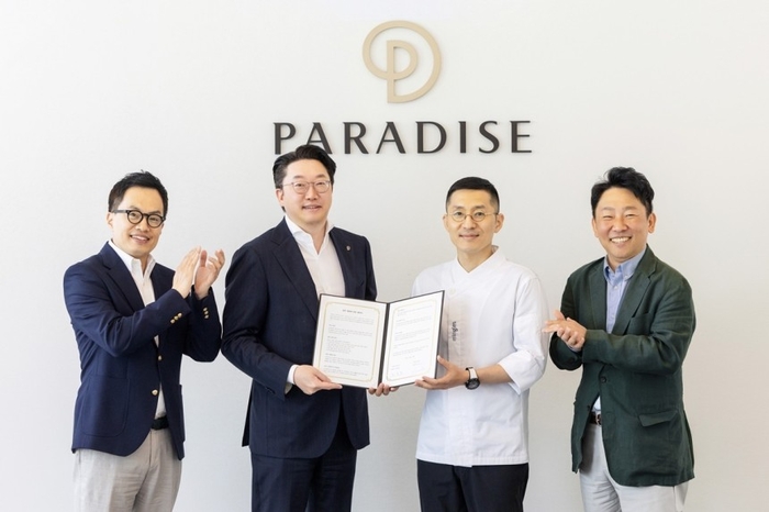 파라다이스그룹과 협약식을 맺고 있는 강민구(우측 2번째) 셰프.