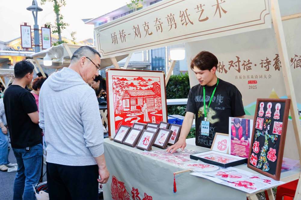 “정말 이분이 천고의 절구 ‘고원초를 지어 송별함’을 남긴 락천 선생인가요? 이 뱐허 신다리를 보세요, 당신의 시에 나오는 ‘맑은 초록이 황성에 닿는다’는 푸리보다 훨씬 활기차지 않나요?”특별히 마련된 AI 바이쥐이 인터랙티브 체험 공간은 관광객들에게 기묘한 시청각 경험을 선사했다. 이번 시문 대회는 무형문화재, 미식, 문창(文创, 문화창작) 등의 요소에 집중해, 특색 체험구역과 창의 마켓을 조성하고, 행사 테마 분위기 벽을 설치하여 많은 시민과 관광객의 인증샷과 체험을 유도했다.