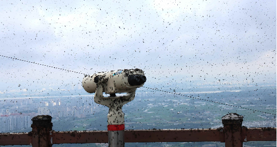 러브버그로 뒤덮인 계양산 정상. (사진=연합뉴스) 수도권 일대에 러브버그(붉은등우단털파리)가 대량 출몰한 와중에,최근 참새·까치 등이 러브버그를 잡아먹는 모습이 목격돼 생태계의 자정 작용을 기대하는 목소리가 커지고 있다.