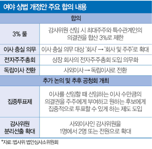 ‘3% 룰’의 확대 적용은 각 기업의 경영권 방어 전략을 근본적으로 바꿨다. 대주주 의결권이 제한되는 상황에서 우호 지분 확보의 중요성이 커지며 ‘백기사’를 찾는 움직임이 가속화하는 모습이다. 개정안이 본격 시행하면 단순한 투자 관계를 넘어 기업 간 주식 스왑(상호 간 주식을 교환해 우호 관계를 맺는 것)을 통한 전략적 ‘혈맹 관계’ 구축이 새로운 트렌드가 될 전망이다.