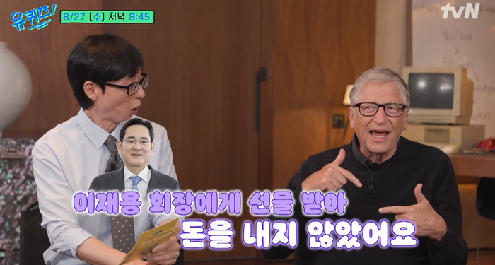 빌 게이츠는 최근 tvN 예능 프로그램 유 퀴즈 온 더 블럭 예고 영상에서 “삼성 갤럭시 폴드폰을 사용 중”이라며 “이재용 삼성전자 회장에게 선물 받아 쓰고 있다”고 말했다.