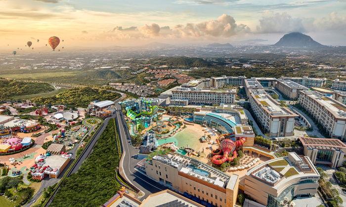호텔 외관 / 사진=제주신화월드 객실에는 코웨이 제품들을 배치했다. 몸 상태에 따라 경도 조절이 가능한 △비렉스 스마트 매트리스 S8+ △비렉스 시그니처 매트리스 컴포트 등이 있고 △‘비렉스 트리플체어’는 몰입,휴식,회복 기능을 돕는다. △노블 공기청정기 △아이콘 정수기는 깨끗한 공기와 물을 제공한다.