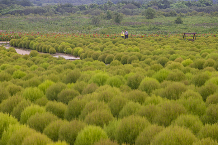 하지만 진짜 주인공은 따로 있다. 이름 그대로,이 정원의 중심은 댑싸리다. 무려 2만7000여 그루의 댑싸리가 심겨 있어 규모만으로도 입이 벌어진다. 가을이 깊어질수록 초록빛의 댑싸리는 붉게 물들고 바람이 불 때면 춤을 추듯 일렁이며 끝없는 붉은 파도를 만들어낸다. 어디서 사진을 찍어도 그림엽서 같은 장면이 연출된다.