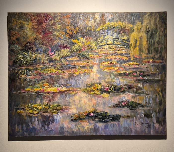 이자벨은 그곳의 수련을 자신만의 시선으로 그려냈습니다. 이자벨의 ‘수련 위로 드리운 빛’은 단순히 모네의 정원을 재현하는 것을 넘어 그가 포착한 빛과 공기를 담아냈는데요. 모네의 정통 인상주의가 현대에 와서도 굳건히 이어지고 있다는 것이 느껴집니다.